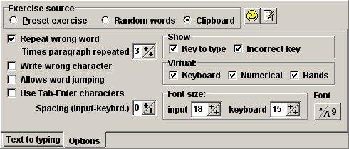 Beta version of program for learning typing, 120 keyboards, academic and game mode, exercises with automatic creation, random characters or from clipboard; virtual keyboard and hands, ready for users with visual problems or blind. Look below www....
