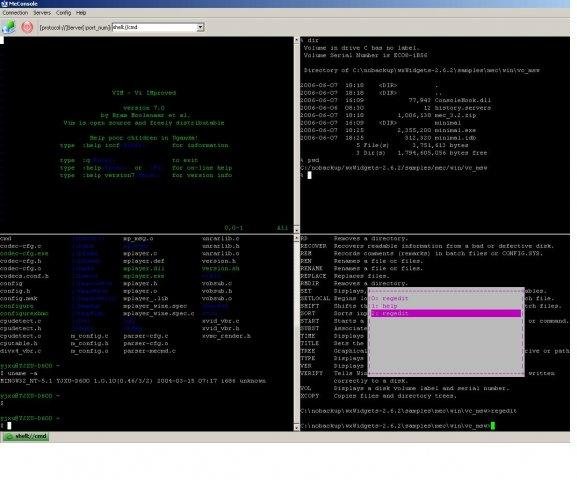 MEConsole is an easy used SSH/Telnet/CMD console for windows with a lot of features. i.e multi & dividual tabs, chinese font support, enhanced windows console, lots of hotkey support.