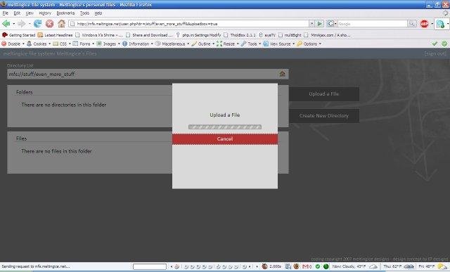 MeltingIce File System is a comprehensive php personal file management script. It allows users to upload to the server it is hosted on, and once the files are uploaded, users may link other people to them, and manage their uploaded files.