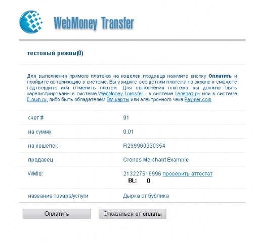 Example of use Merchant-interface of WebMoney Transfer payment system on PHP, MySQL.