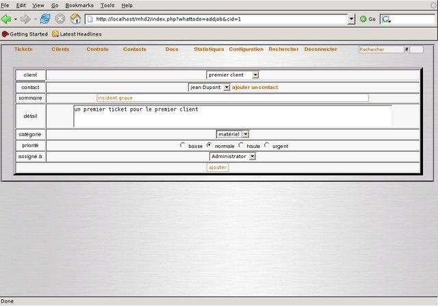 MHD² is yet another ticketing software using php/mysql. It uses the same concepts as Martin's Helpdesk (mhd.sf.net) and features creating tickets, events and customers profiles, searching in tickets, exporting to PDF. It uses templates for html display