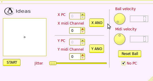 Midiball is a simple standalone musical application for Linux to generate midi events from the motion of a virtual ball. It uses Qt and ALSA midi API. It can be also used with the jack daemon.