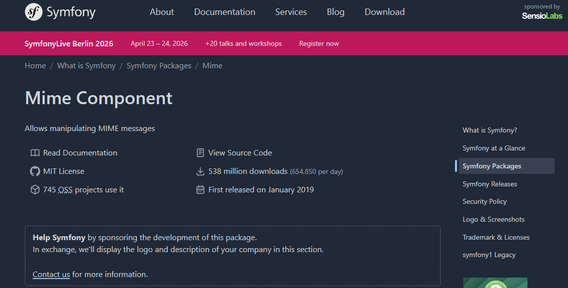 Symfony Mime is a component that facilitates the creation, manipulation, and parsing of MIME messages. It is commonly used for handling email content and attachments in Symfony applications. The component supports building complex email structures, including multi-part messages, and correctly encoding text and binary data. Mime is an essential part of Symfony Mailer but can be utilized independently to handle MIME message generation.