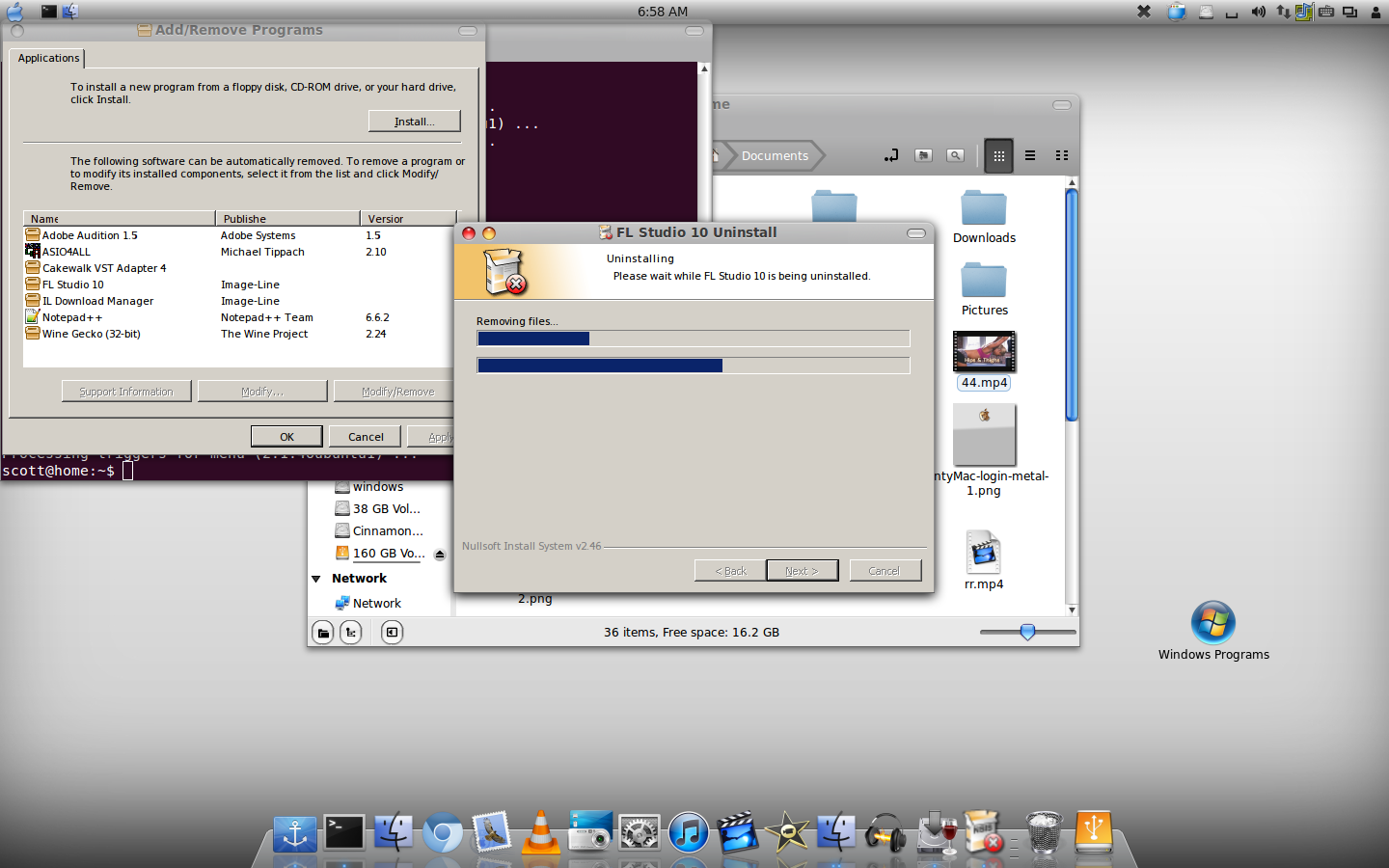Also included in this multimedia release from mintyMac is a solution for a commercial quality multitrack system that you can count on not just test and play with. The solution is the version of wine (1.7) that is pre installed was running Adobe Audition 1.5 and Fruityloops with no latency issues.