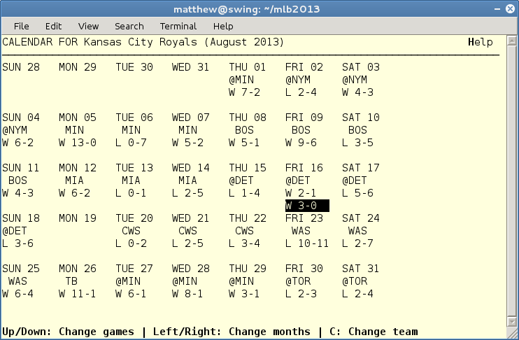 - VIEW: Regular listings, calendar listings by team, or master scoreboard view including in-game action.