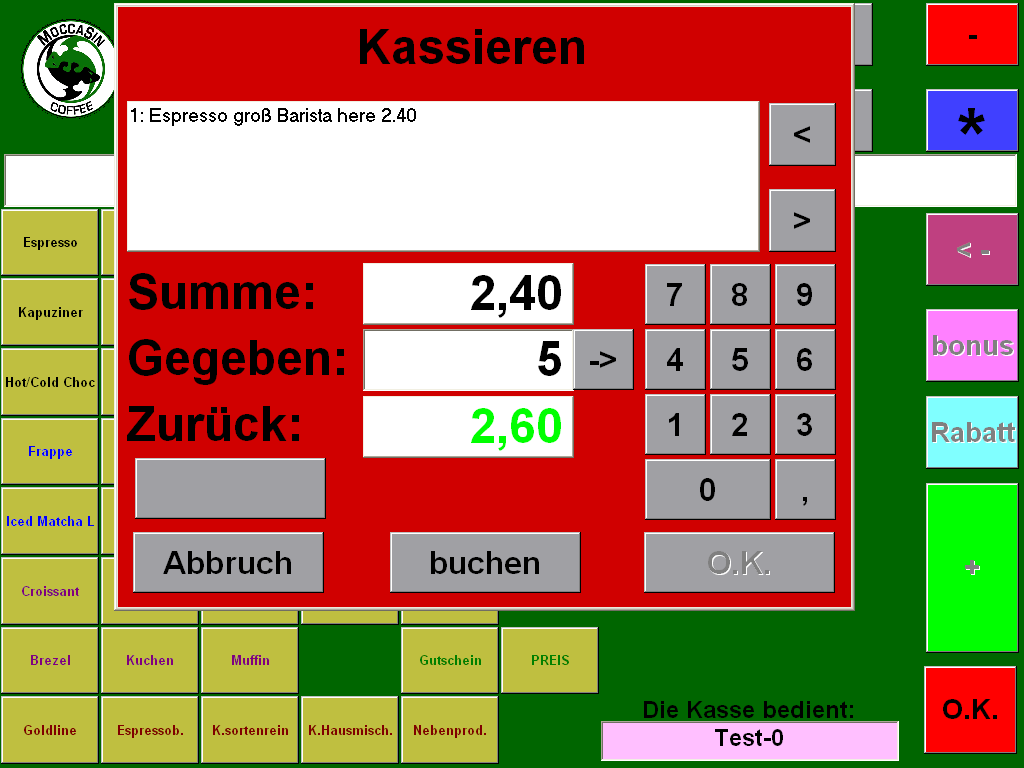 MoccaSin-POS is a POS system for use in MoccaSin coffee shops or others. It is intended to replace an older closed source version using Toolbook.