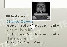 The joomla 1.5 native module shows a list of registred users: the last new users, random user or the last connected users. You can define: - 3 filtering fields - 2 other fields to be shown - number users to be shown - if avatar should be shown