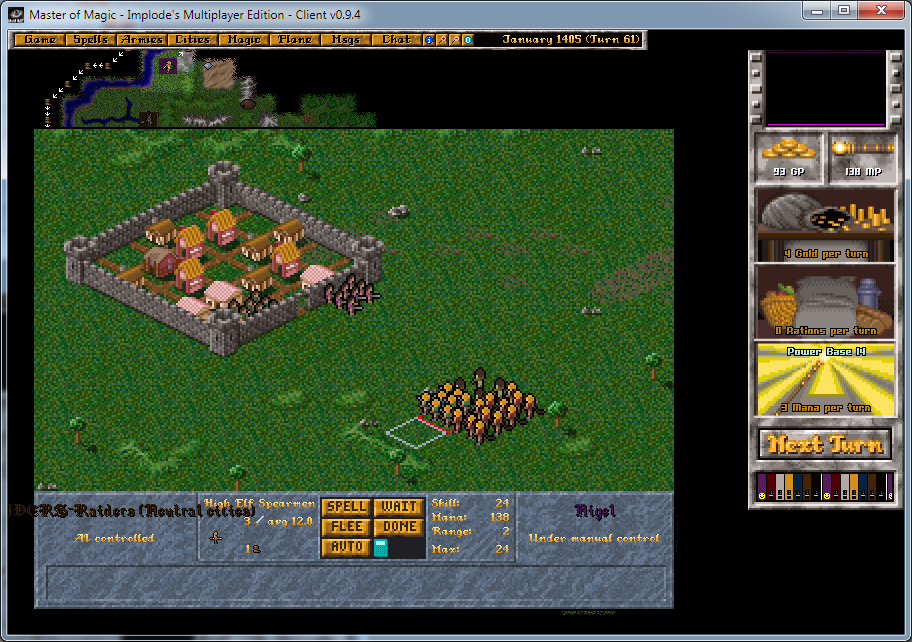 This is an attempt at a multiplayer client/server java rewrite of Microprose/Simtex's classic DOS turn based strategy game Master of Magic. Latest versions now require Java 17, however since a lot of folks have been having trouble setting this up, I am now providing 2 versions, one with a JRE included in the download, and one without. Beyond this, it should just be as simple as unzipping the file and running server.bat to get the server running locally, and client.bat to start up the client. See the readme for more details.