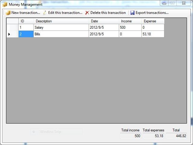 This application can be used to keep a personal record of your money transactions.