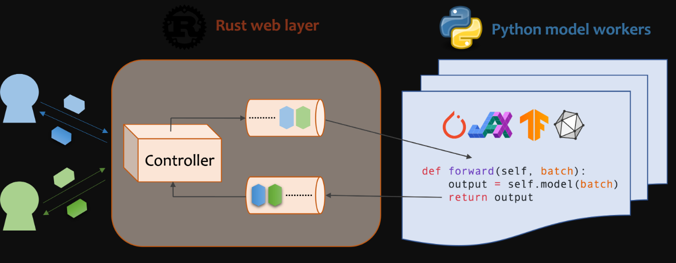 - Aggregate requests from different users for batched inference and distribute results back
