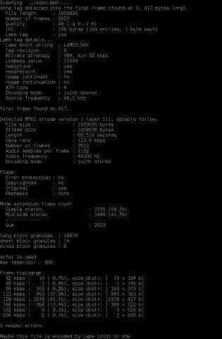 - guess encoder used (lame/gogo/xing/helix/fhg(new, old and ancient)/blade)
