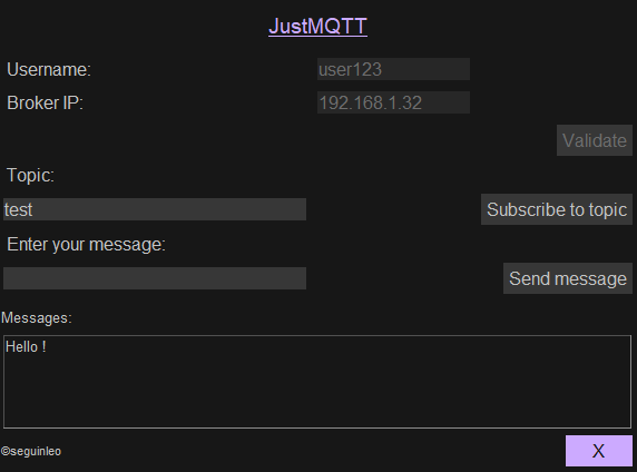 Username, broker ip and topic are stored in a local text file.
