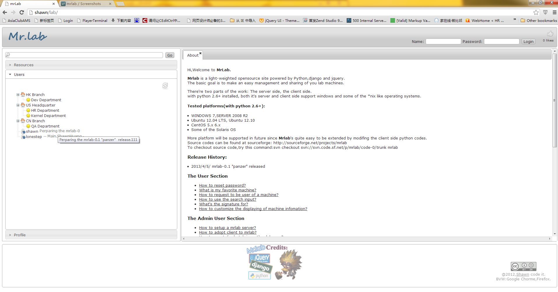 Mr.lab is a python based site. it adds multiple machines to be under control by the site, so that others can share those machines more easily and effectively.