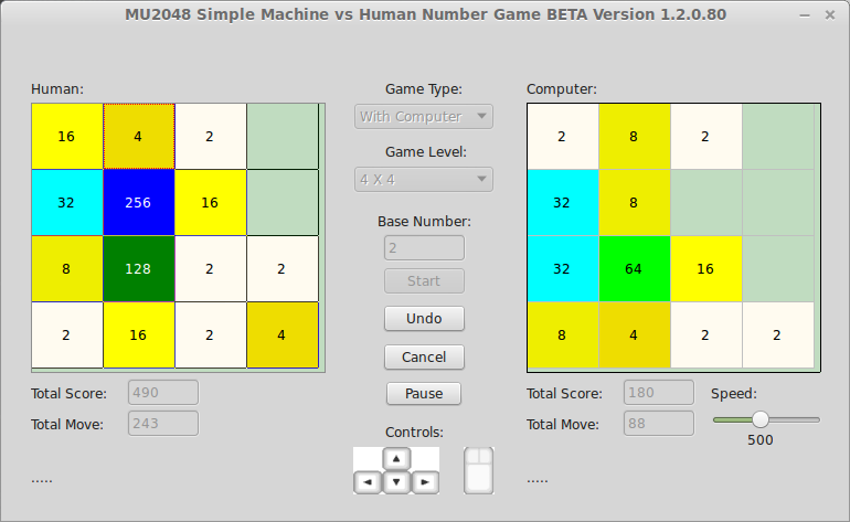 MU2048 is a clone of 2048 game but has a different story. You may change your base number and you will play with computer (is ready now).