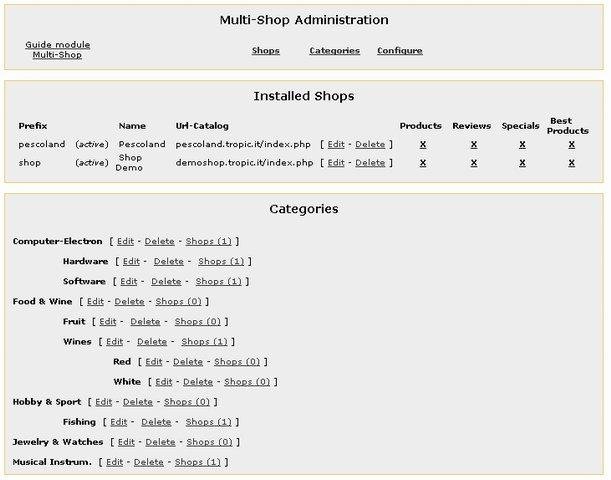 CMS & e-commerce cart system Multi Shop written in PHP MySql: a virtual mall, including various eCommerce stores (osCommerce) and content (PhpNuke). Each store could be managed in autonomy by the own admin as if it were independent from the e-marketplace