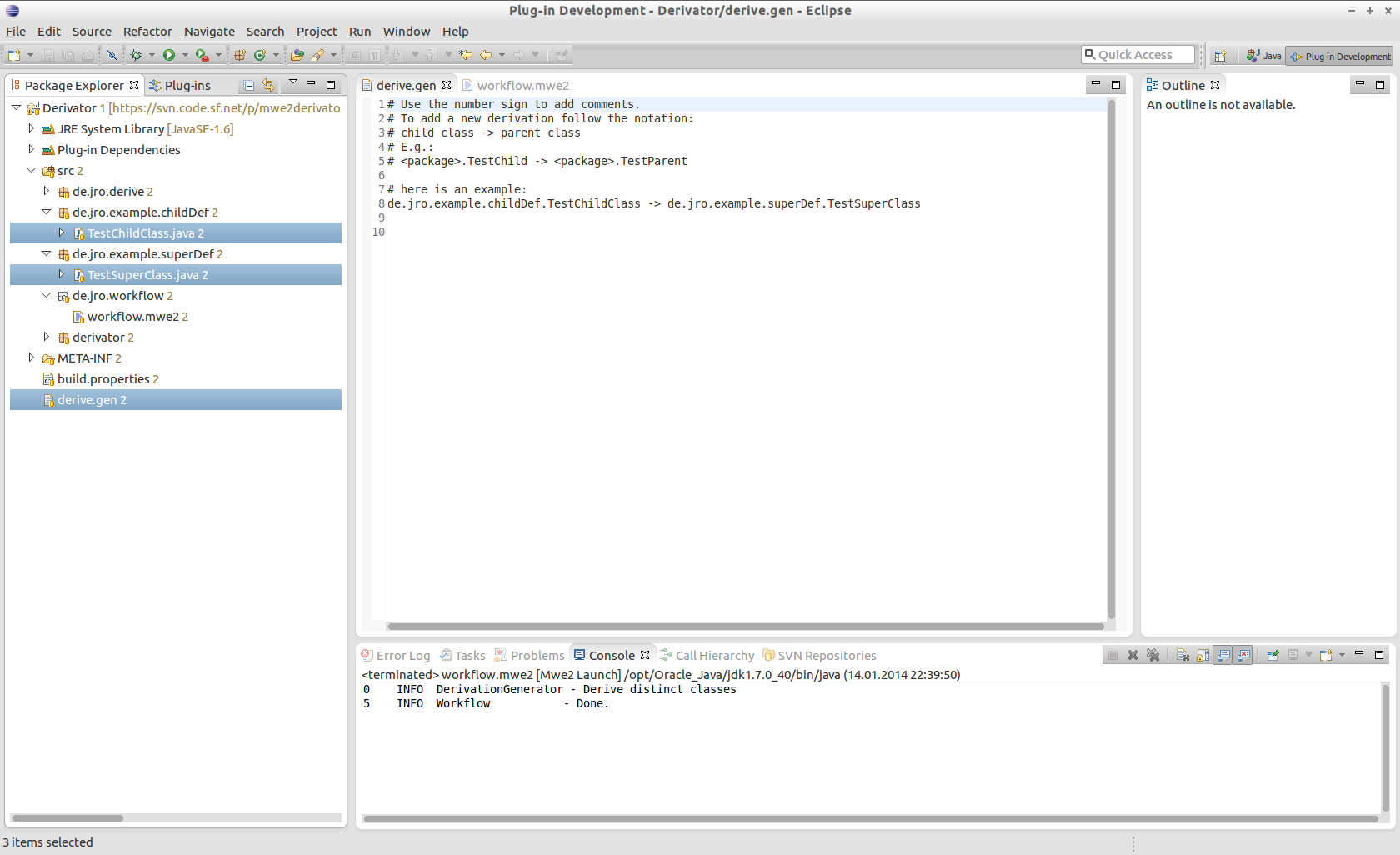 The derivator is a mwe2 workflow comp. for auto inheritance generation
