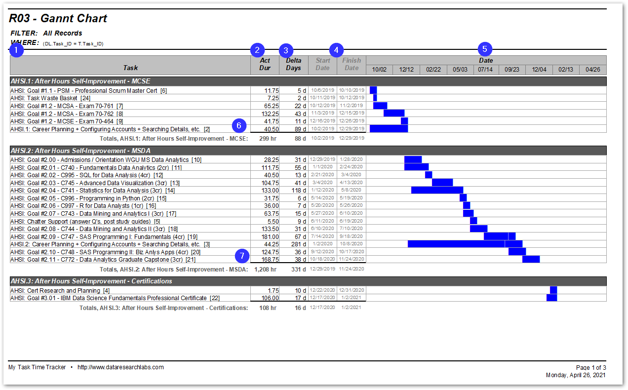 A free, lean task and time tracker with a simple user interface and several reports for analysis. Use it daily. Use it consistently. It literally takes just 3 to 4 minutes per day. Built as a standalone tool for individual contributors working from a desktop or laptop computer. Rollup your time for better estimates, for better performance review discussions, to help optimize where effort gets focused, or just to set expectations for how long a complex thought-work-task takes. Simple, low-tech, minimalist data entry that rolls up your time and tasks into meaningful, actionable reports.