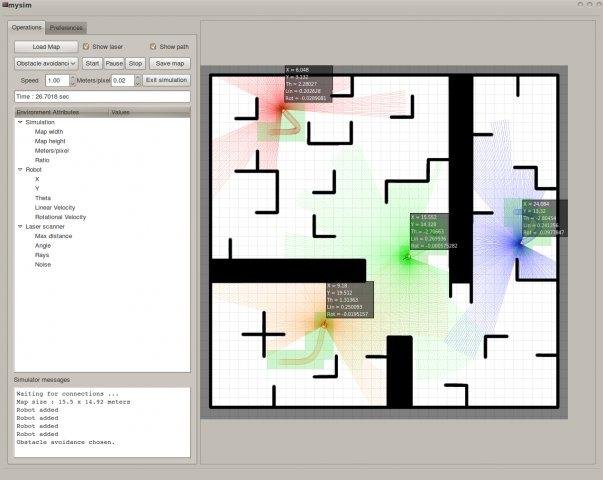 A simple 2D multiple robot simulator with API to be used by external C++ controllers.