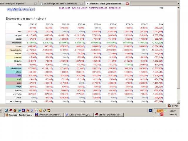 myBankTracker - a LAMP personal finances management tool based on automated processing of bank statements. After download, bank statements are automatically splitted into tags based on predefined rules. Streaming of the results on a local webserver.