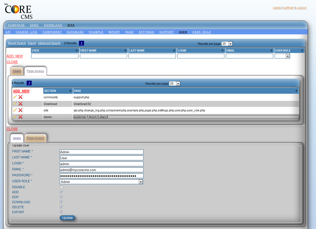 - User Permission + Page Access Control