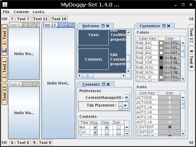 MyDoggy is an IntelliJ Idea like docking framework for managing secondary windows within the main window. MyDoggy allows to move, resize or detach those secondary windows. Also, MyDoggy provides support for content management of the main window.