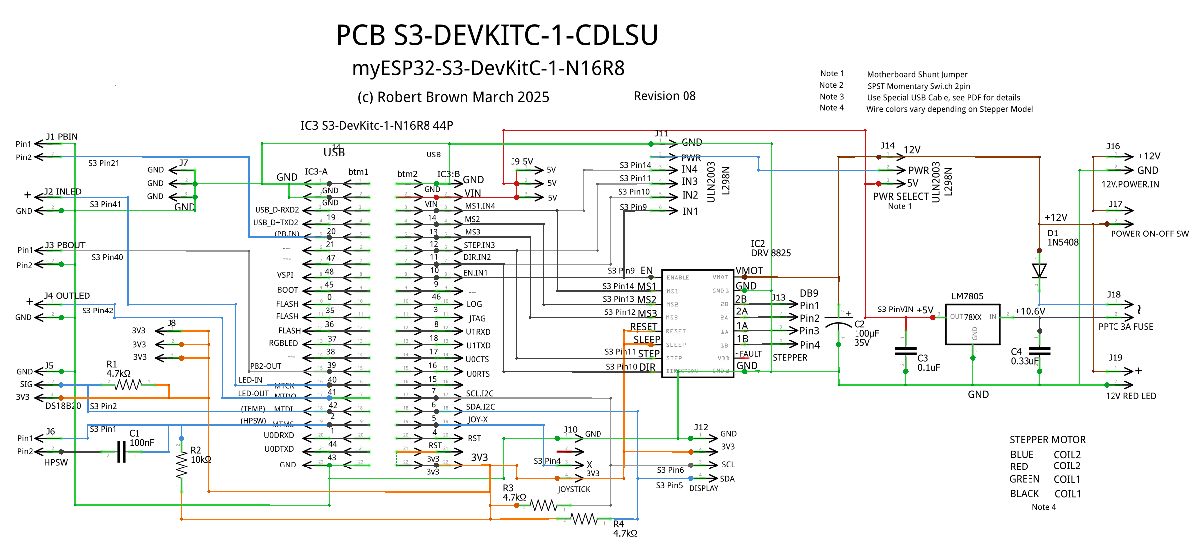 - Motors - 12V NEMA and 12V 28BYJ-48 stepper motors (built-in backlash support)