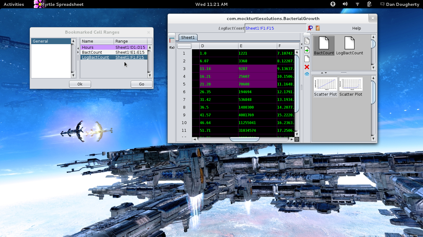 Myrtle is a simple programmable spreadsheet and statistical analysis software specifically designed for learning statistics. It provides the standard spreadsheet functionality one would expect like multiple tabbed sheets, relative and absolute row and column referencing in formulas, and a large catalog of built-in functions. Functions specific to logic and computer science, mathematics, probability, and statistics are available. Student's can easily create, customize, and update plots and graphical summaries of their analyses.