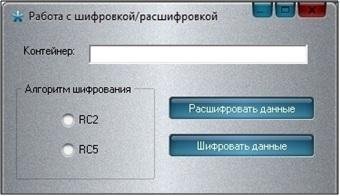Software tool for cryptographic protection of data is used to encrypt and decrypt files. Signature and check for dokumemntov and text files.