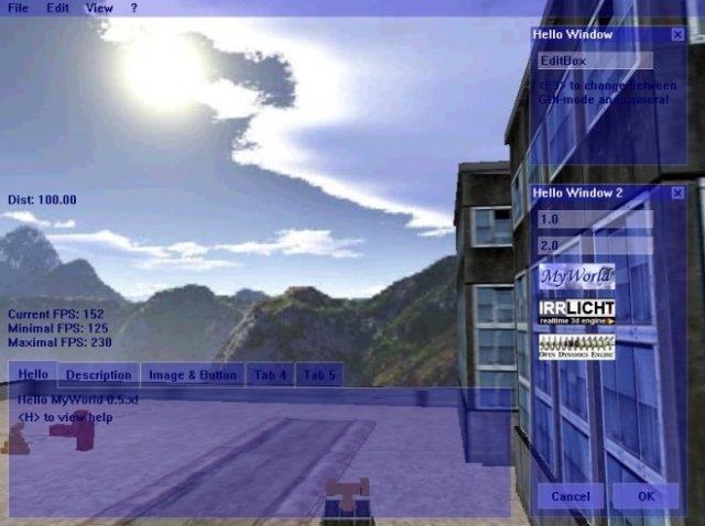 MyWorld is an open virtual reality and game engine. It is written and usable in C/C++. It has own abstract layers for Graphics and Physics. Actually we use Irrlicht for 3D-Rendering and GUI, and ODE for Physics. It is smart, powerful and easy to extend.