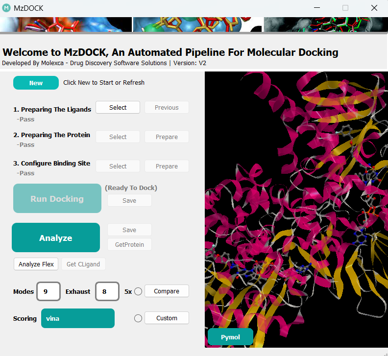 -Integerated With Pymol-open-source for visualizing interaction (PSE file) generated from MzDOCK