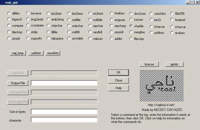 najitool generally generates, converts, filters, edits, encrypts, splits, joins, and patches files. najitool is being developed in the ANSI C standard so it should work and compile on any system that supports ANSI C, which should be every system.