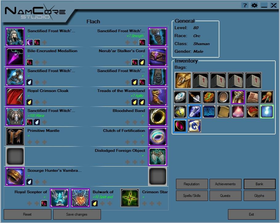 Namcore Studio provides a professional environment to manage account and character data of your World of Warcraft Server. While supporting almost all popular emulators/cores, this easy-to-use application allows you to:
