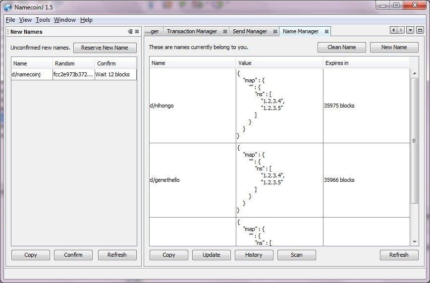 NamecoinJ is a Java based graphical user interface for Namecoin, a peer-to-peer Domain Name System based on Bitcoin technology (a decentralized cryptocurrency).