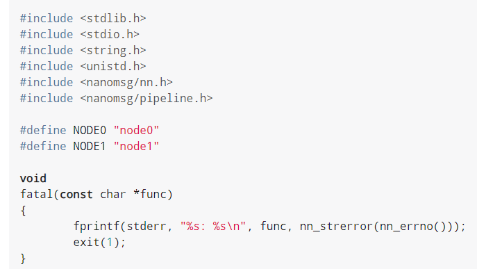 The nanomsg library is a simple high-performance implementation of several "scalability protocols". These scalability protocols are lightweight messaging protocols that can be used to solve a number of very common messaging patterns, such as request/reply, publish/subscribe, surveyor/respondent, and so forth. These protocols can run over a variety of transports such as TCP, UNIX sockets, and even WebSocket. This pattern is useful for solving producer/consumer problems, including load-balancing. Messages flow from the push side to the pull side. If multiple peers are connected, the pattern attempts to distribute fairly. nanomsg is a socket library that provides several common communication patterns. It aims to make the networking layer fast, scalable, and easy to use. Implemented in C, it works on a wide range of operating systems with no further dependencies. The communication patterns, also called "scalability protocols", are basic blocks for building distributed systems.