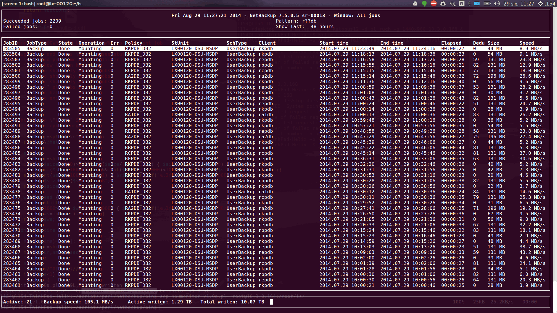 Monitoring tool for Symantec Netbackup backup software, written in Perl with Curses. Press "h" to see all available options.