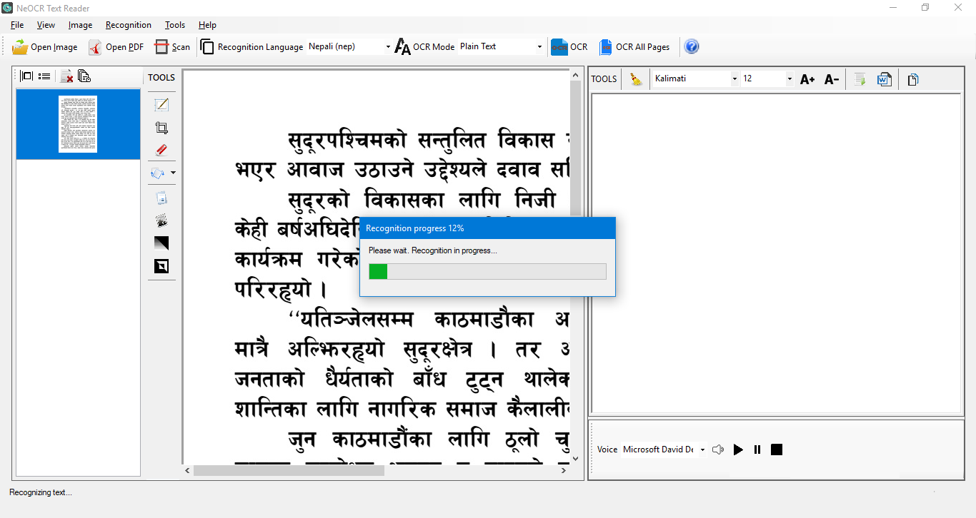 NeOCR is a free software based on Tesseract (Open Source OCR Engine) for the Windows operating system. It provides an easy and user-friendly user interface to recognize texts contained in images as well as PDF documents and convert to editable text formats (.txt, .doc, .docx). This product is accessible to Blind and Visually Impaired peoples (tested with NVDA and Narrator).