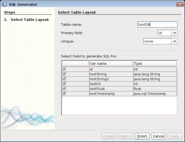 - SQL Generation (currently MySQL, PostgreSQL and JavaDB (Apache Derby))