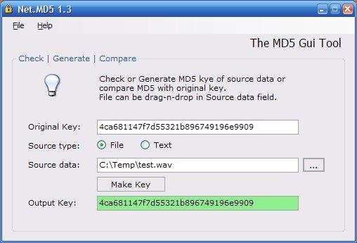 Net.MD5 is a handy MD5 checker and generator. It can encode unlimited bytes of data into 32bit key, and auto compare against original key. A visual GUI will keep MD5 more friendlier. It was written in C# under .NET Framework 2.0
