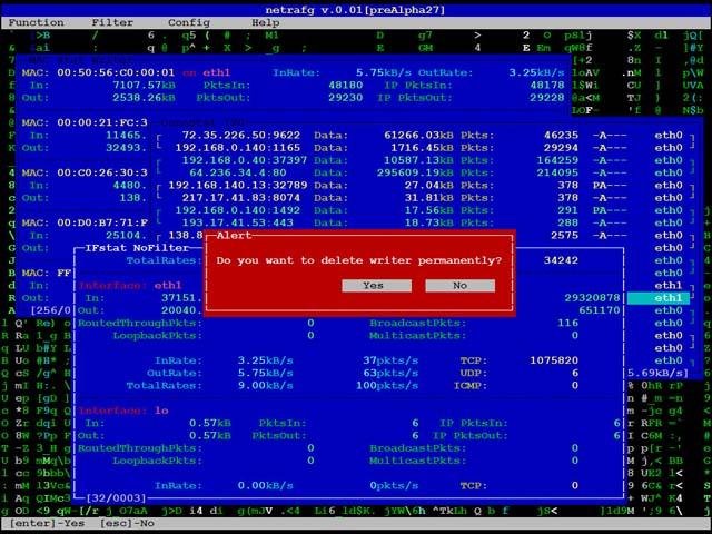 netrafd is a C written (ncurses) linux program, allowing to monitor all network traffic routed through the machine it is installed on. Flexible and easy configuration of logging options, statistics, periodical summaries.