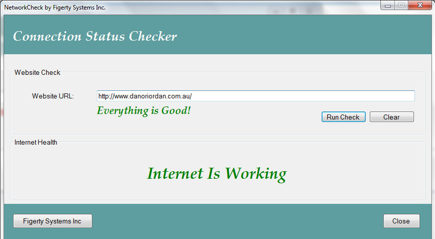 Figerty Systems' Network Check will show you if a Website can be reached by simply inserting the website IRL. It will also tell you if your Internet is connected.