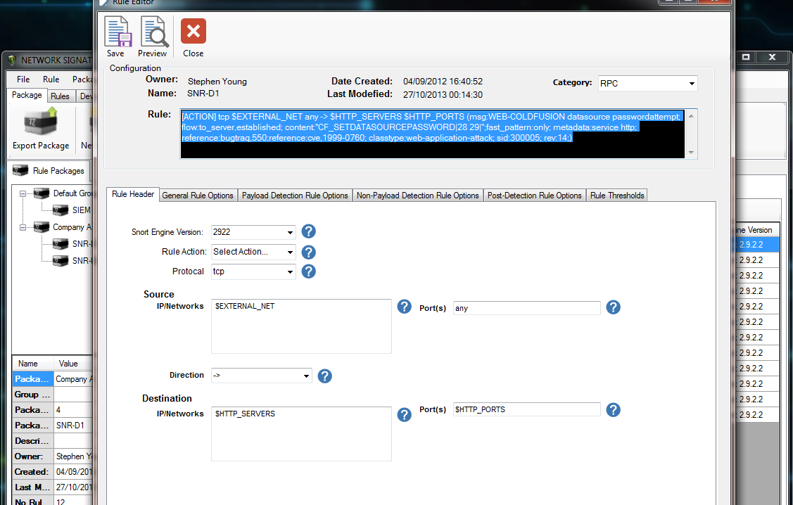 - Signature pack template to allow you to get the best recommended signature set defined by the SourceFire.