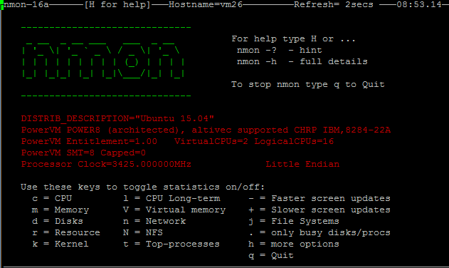 nmon is short for Nigel's Performance Monitor It either shows you the stats on-screen updating once a second or saves the data to a CSV file for later analysis and graphing. For details see the homepage ==> http://nmon.sourceforge.net