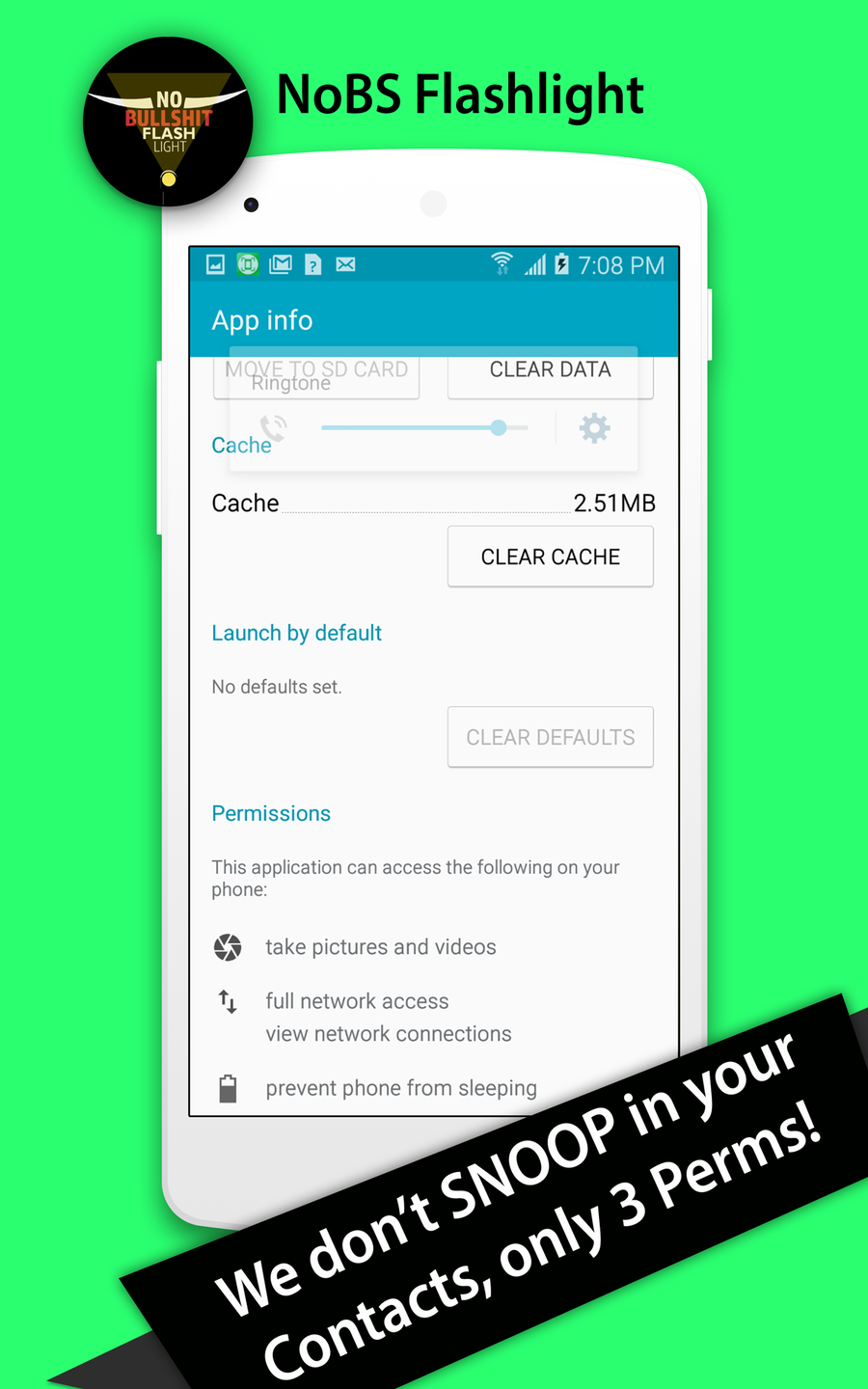 Keep your personal information and contacts with No BS Flashlight.