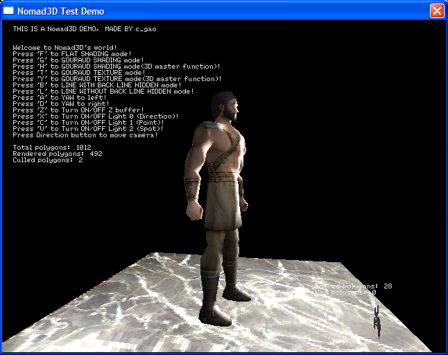 Nomad3D is a platform independent 3D Engine, it is simple and reduced, can use for several platform such as Win32, Linux, Nintendo DS, Sony PSP, Apple iPhone, cell phone and other mobile devices. It's main coded language is C/C++.