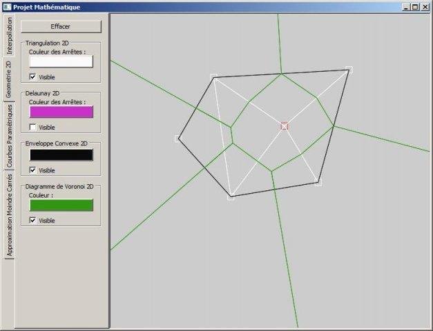 This project is about the implementation of algorithms studied during mathematics and computer graphic courses for my MS's last year ( Point cloud approximation, Hermitian interpolation, Bezier / B-Spline Curves, Convex Hull, Delaunay triangulation