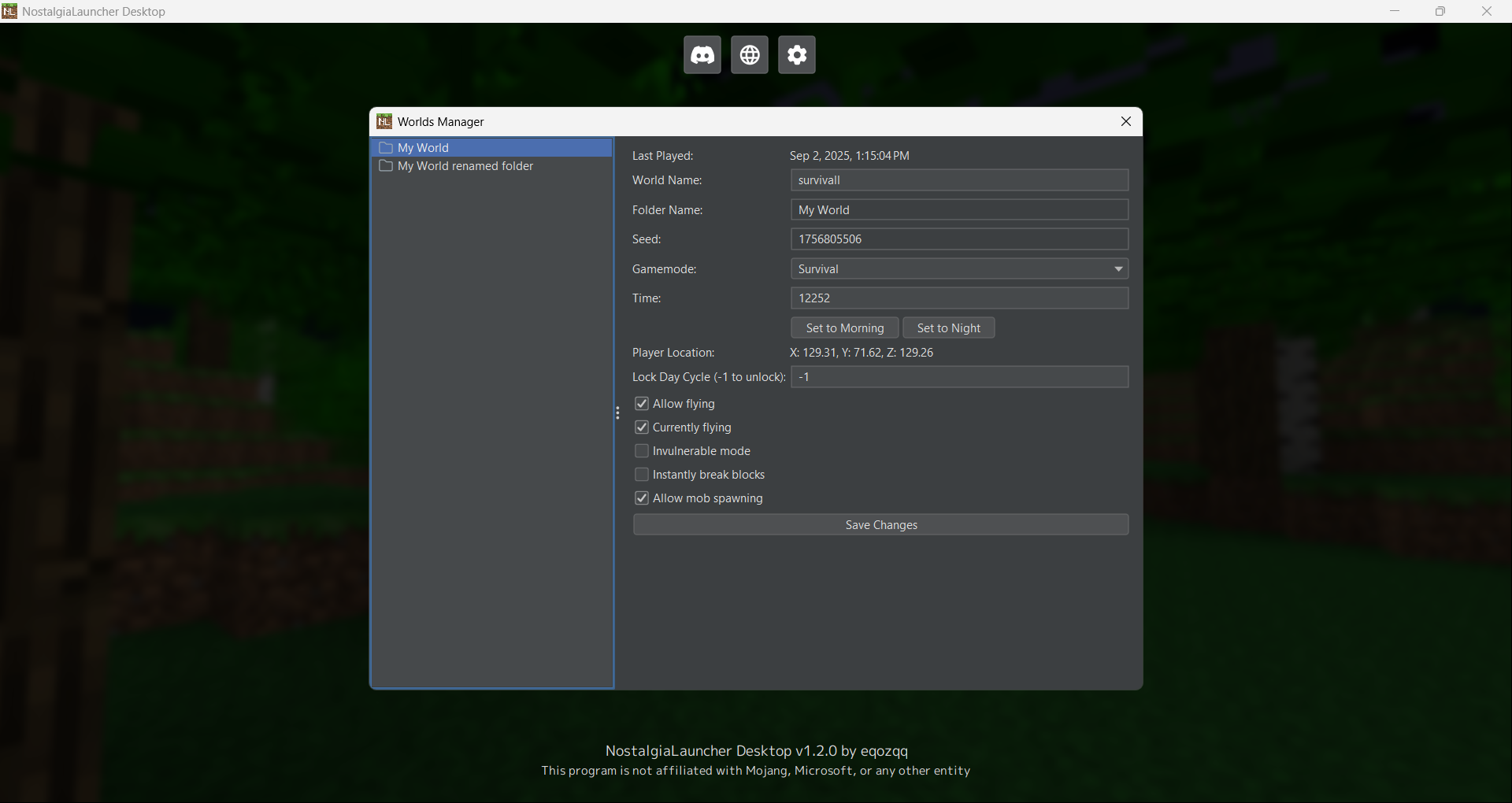 - World manager that allows editing world info