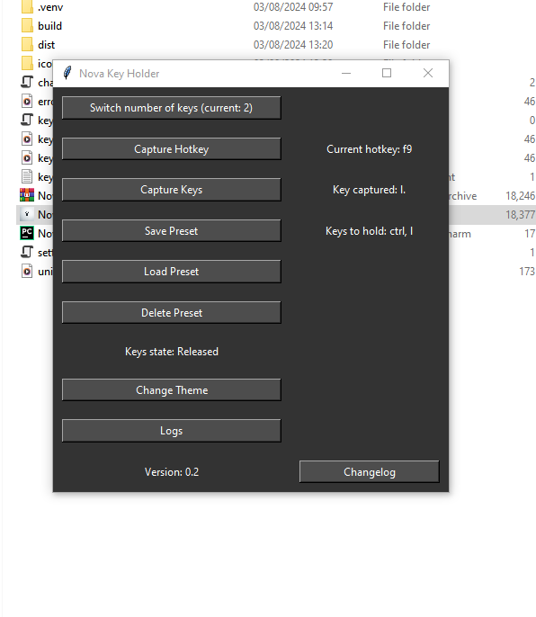 Simple, effective tool to hold down multiple other keys with a single hotkey. Set presets to save your macro for your desired hotkey without needing to reinput a new combination. Feedback appreciated.