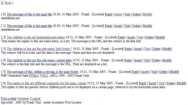 Sprocket is an ATTEMPT at efficient databasing on NON-PERSISTENT applications (as opposed to MySQL) as used in the WEB (PHP). Sprockets is manifested in a dual purpose forum-CMS, with heirarchical qualities like inheritence and infinite nesting of data.