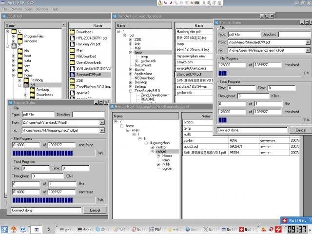 NullFXP is a cross-platform SFTP/FTP/Secure FTP client with GUI, based on Qt technology. It support multi host connection and multi transport each other supported protocol at meanwhile.