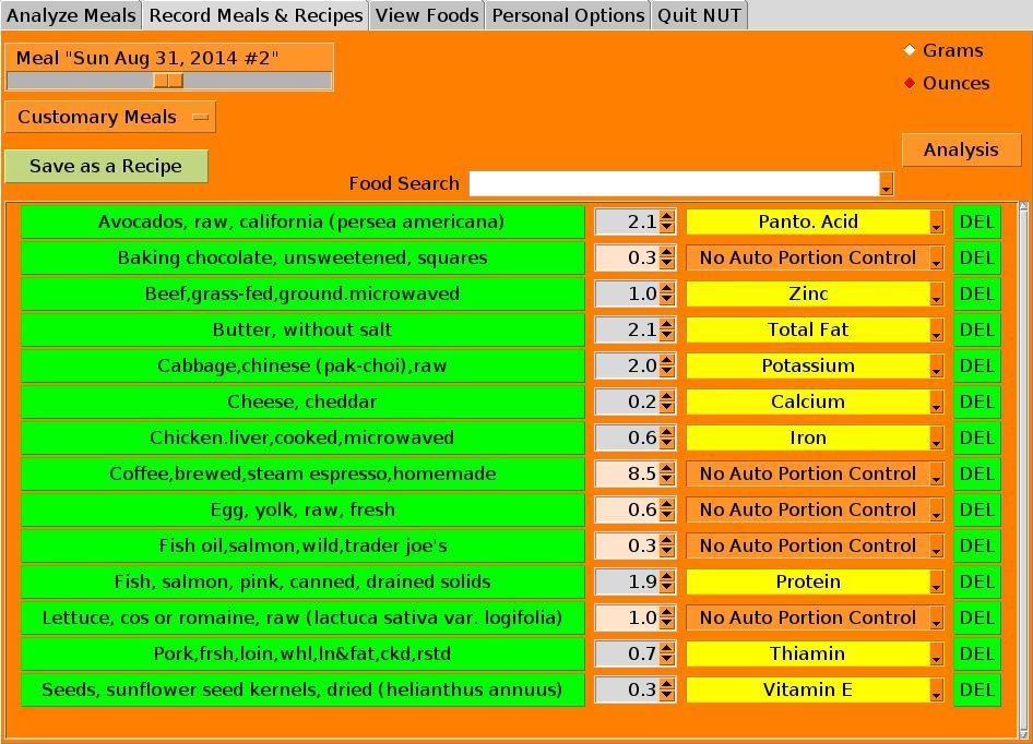 nut is nutrition software to record what you eat and analyze your meals for nutrient composition. The emphasis is on personal dietary experimentation to determine the best possible diet. The software uses SQLite for a portable, os-independent application.